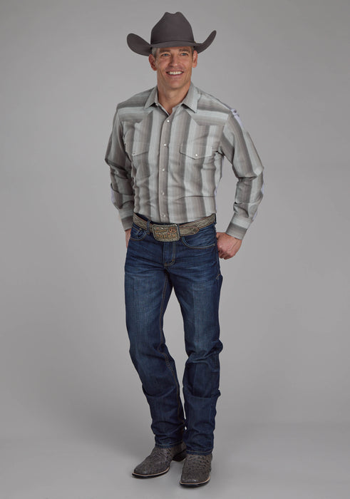 Men's Long Sleeve Western Style Shirt * Standard 1 Pt Front & Back Yokes * Patch Pockets & Flaps * Striped Cotton/Poly Broadcloth * 3 Snap Cuff