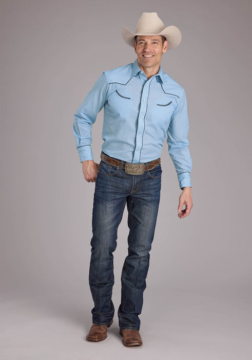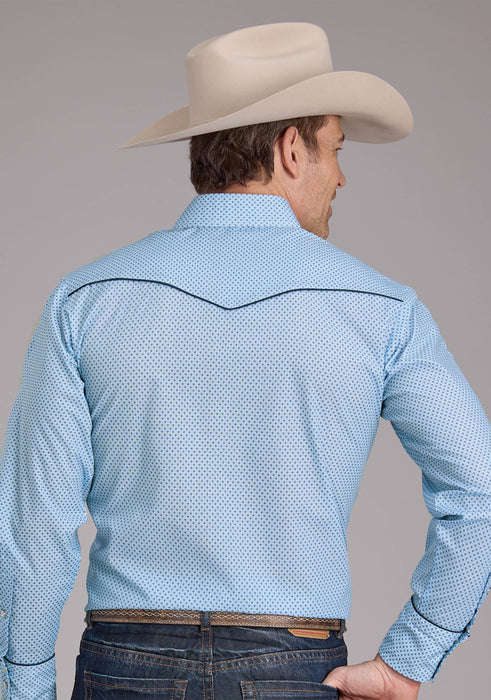 Men's Roper Blue Mini Cross Long Sleeve Western Shirt