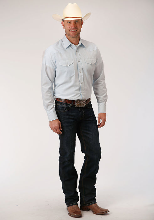Men's Long Sleeve Western Style Shirt * Standard 1 Pt. Front & Back Yokes * Patch Pockets & Flaps * Poly/Cotton Striped Fabric W/Silver Lurex * 3 Snap Shaped Barrel Cuff