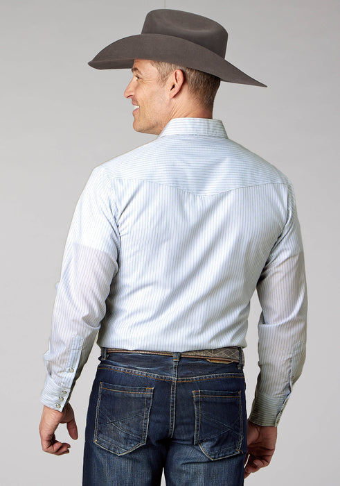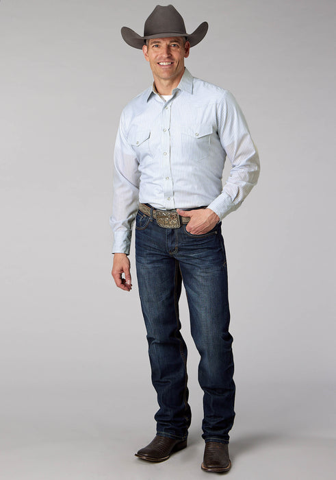 Men's Long Sleeve Western Style Shirt * Standard 1 Pt. Front & Back Yokes * Patch Pockets & Flaps * Satin Stripe * 3 Snap Shaped Barrel Cuff