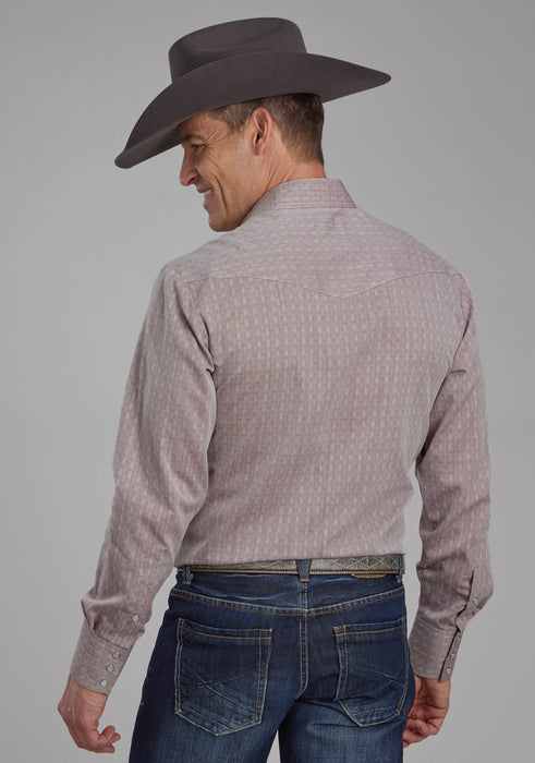 Men's Long Sleeve Western Style Shirt * 2 1 Pt Pockets And Flaps * Curved 1 Pt Front And Back Yokes * Poly/Cotton Tone On Tone Solid Fabric Featuring Abstract Or Western Motifs * 3 Snap Shaped Barrel Cuff