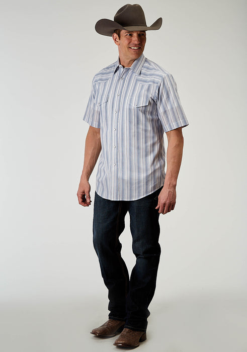 Men's Short Sleeve Western Style Shirt * Standard 1 Pt Front & Back Yokes * Patch Pockets & Flaps * Striped Cotton/Poly Broadcloth