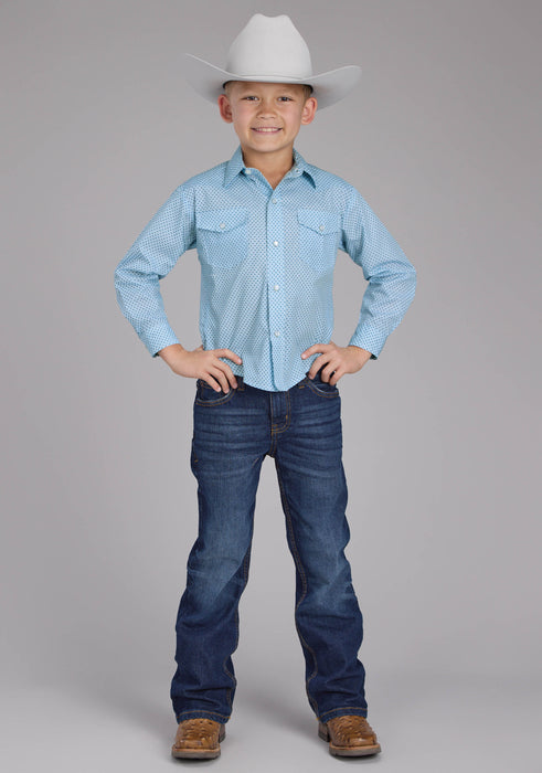 Boy's Roper Blue Mini Cross Long Sleeve Western Shirt