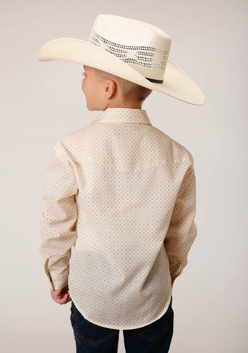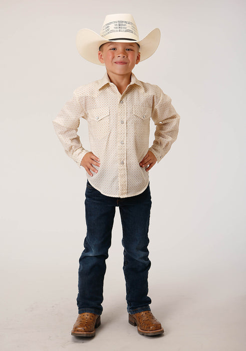Boy's Long Sleeve Western Style Shirt * Standard 1 Pt Front & Back Yokes * Patch Pockets & Flaps * Cotton/Poly Fabric Printed With Allover Or Wallpaper Stripe Florals * 1 Snap Cuff