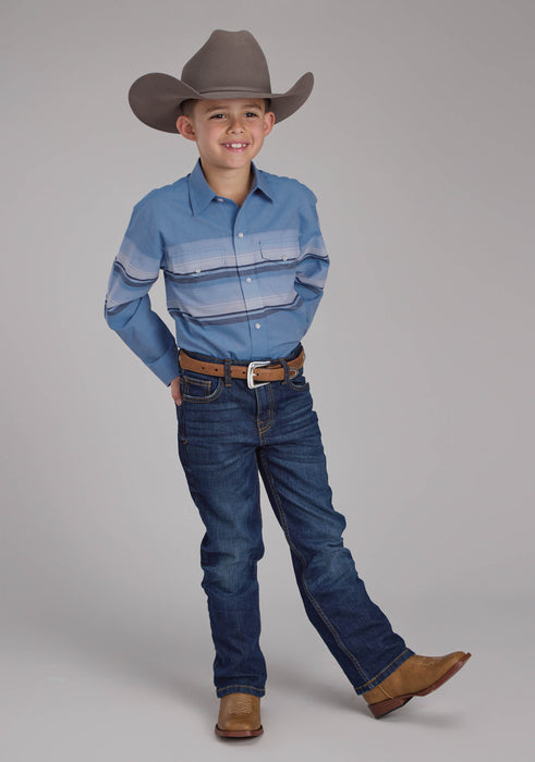 Boy's Roper Border Stripe Long Sleeve Western Shirt