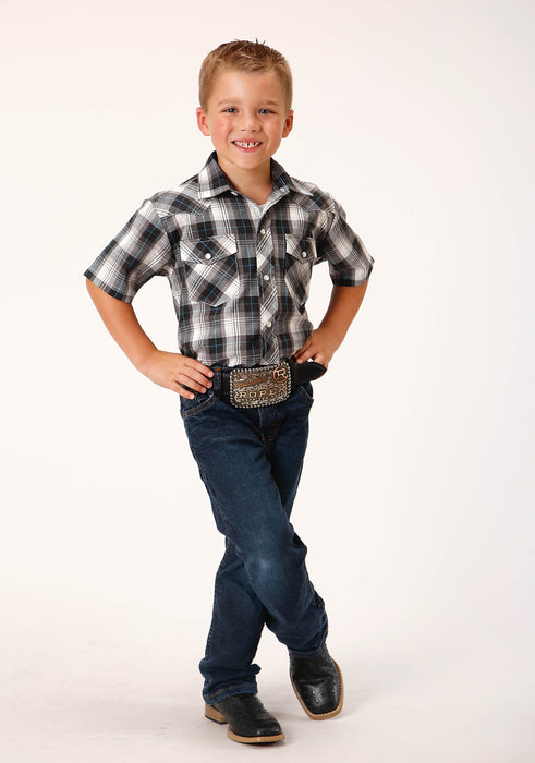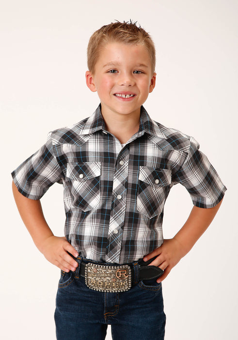 Boy's Short Sleeve Western Style Shirt * Standard 1 Pt. Front & Back Yokes * Patch Pockets & Flaps * Cotton/Poly Plaid YD Fabric