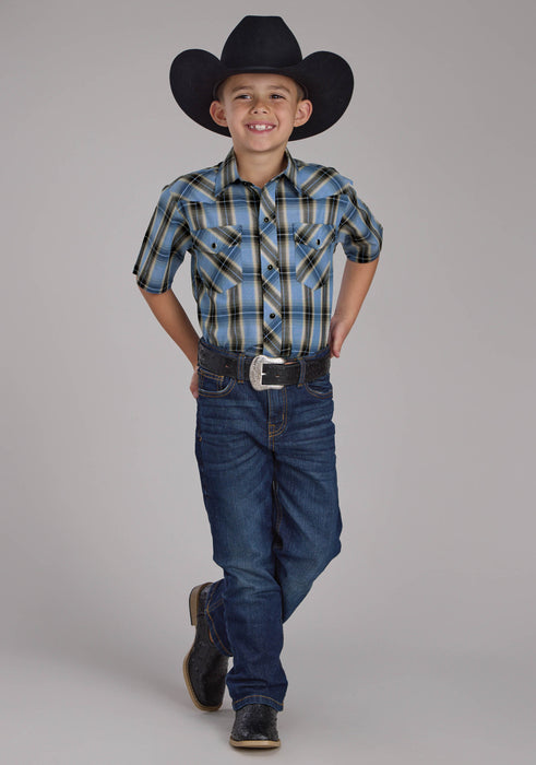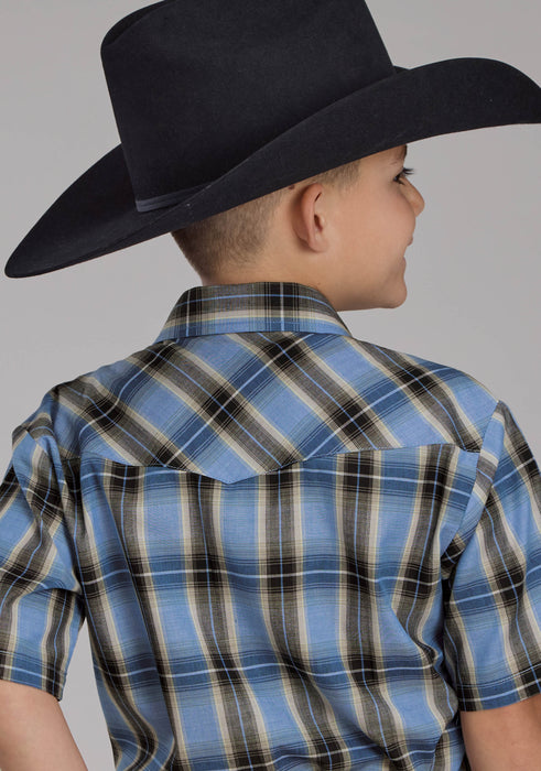 Boy's Roper Blue & Brown Plaid Short Sleeve Western Shirt