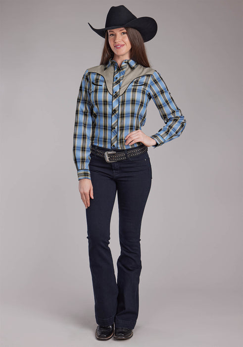 Women's Roper Blue & Brown Plaid Long Sleeve Western Shirt
