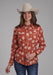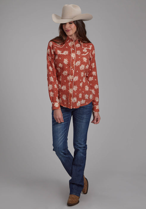 Women's Long Slv Western Shirt * Curved 1 Pt Back Yoke * Print Floral Cotton/Poly Broadcloth Trimmed W/Solid Cream Piping * Smile Pockets/No Arrow Points * F/B Yokes * Snap Front * 1 Snap Cuff