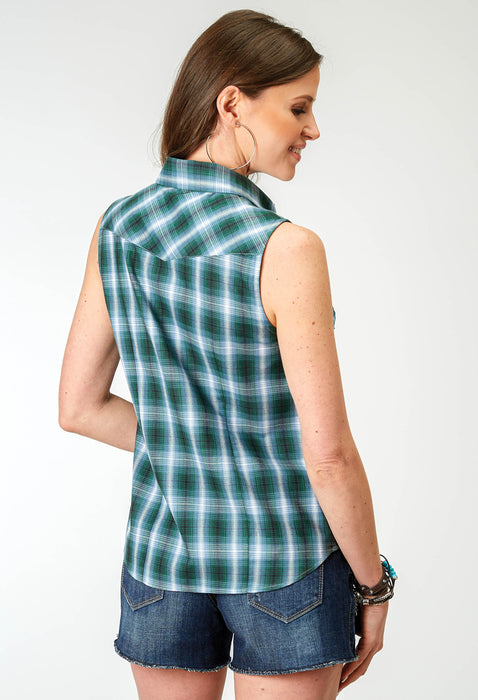 Women's Sleeveless Western Shirt * 2-1 Pt Pkts & Flps * Curved 1 Pt Front & Bk Yokes * Cotton/Poly Plaid YD Fabric * Yokes, Center Plkt & Pkt/Flps Are Cut On Bias * Traditional Western Styling