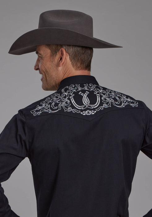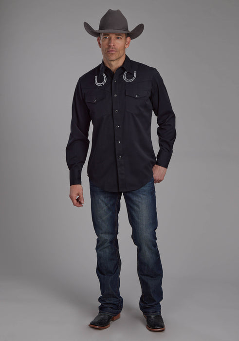 Men's Long Sleeve Shirt * Poly/Rayon Twill * Horseshoe Embroidery On Front & Back Yokes * 1 Point Pockets & Flaps * 3 Snap Cuff * Snap Closure
