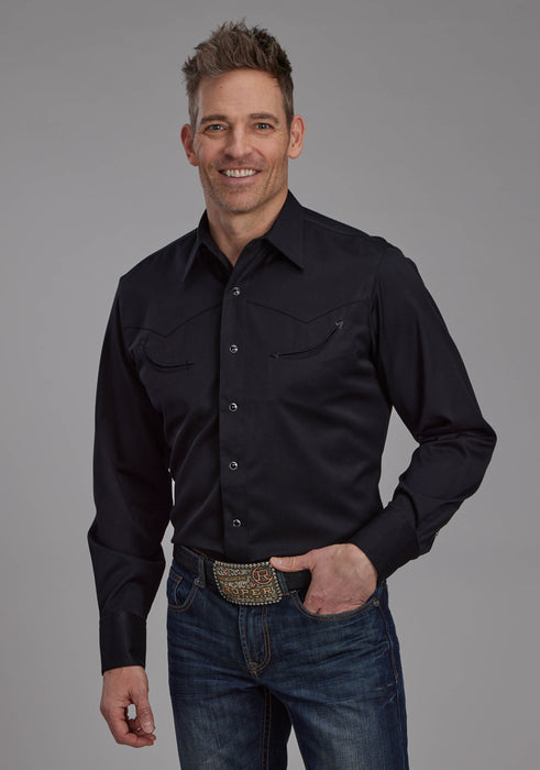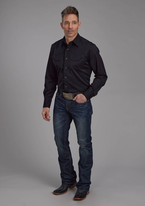 Men's Long Sleeve Shirt * Poly/Rayon Twill * Steer Skull And Flag Embroidery On Back * 1 Pt Curved Front Yokes * Smile Pockets With Embroidered Arrow Pts * 3 Snap Cuff * Snap Closure