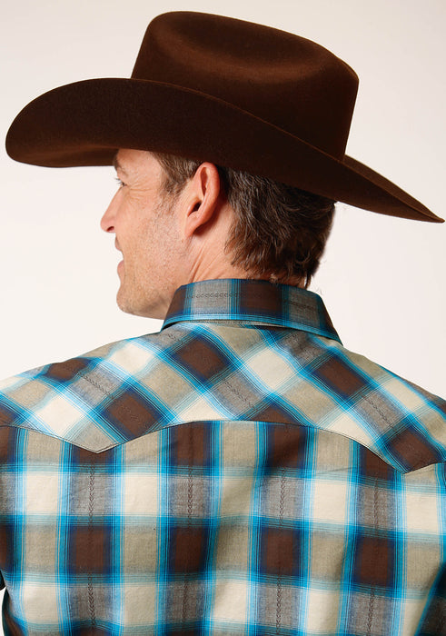 Men's Roper Brown & Blue Arrow Plaid Western Shirt