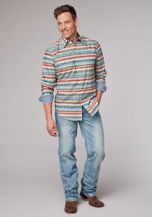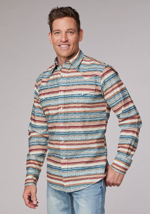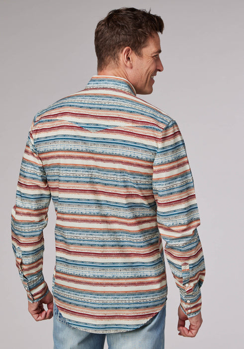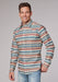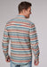 Men's Long Sleeve Shirt * Horizontal Aztec Print * 1 Pt Front & Back Yokes * 1 Pt Curved Pockets & Flaps * Chambray Inside Trim * 3 Snap Cuff * Opaque Snap Front * Garment Washed
