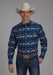 Men's LS Horizontal Aztec Print Shirt * 100% Cotton Poplin * 1 Pt Front Yoke * 1 Pt Slightly Curved Back Yoke * 1 Pt Curved Pockets & Flaps * Denim Inside Trim * 3 Snap Cuff * Opaque Snap Front * Garment Washed