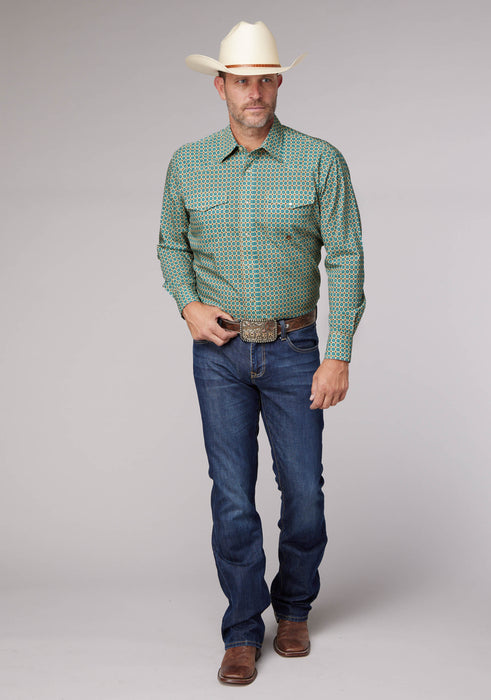 Men's Long Sleeve Shirt * Snap Front * 1 Point Front Yoke Into Neck * 1 Point Back Yoke * 1 Point Flaps & Pockets * 2 Snap Cuff * Roper "R" Embroidery
