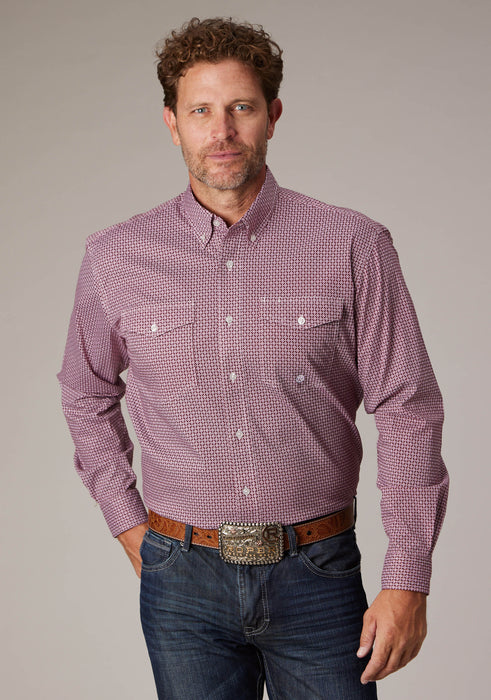 Men's Long Sleeve Shirt * 97% Cotton/3% Spandex * Bttn Dn Collar * 1 Pt Back Yoke W/Pleat & Locker Loop * 2 One Point Pkts & Flaps * Roper "R" Embroidery