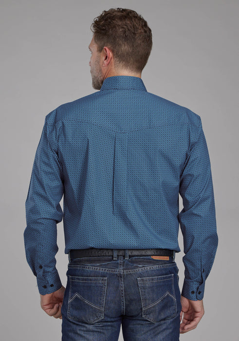 Men's Long Sleeve Shirt * 97% Cotton/3% Spandex * Bttn Dn Collar * 1 Pt Back Yoke W/Pleat & Locker Loop * 2 One Point Pkts & Flaps * Roper "R" Embroidery