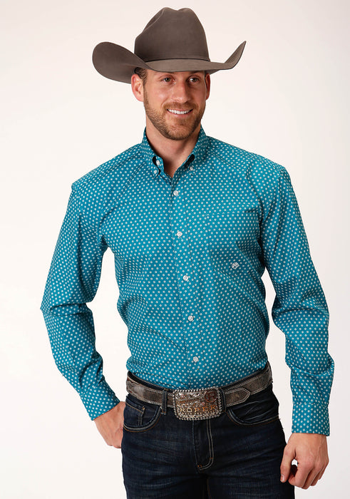 Men's Long Sleeve Shirt * Btn Dn Collar * Straight Back Yoke W/Pleat & Locker Loop * 1 One Point Open Pkt * Roper "R" Embroidery