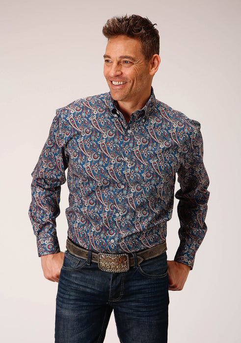 Men's Long Sleeve Shirt * Btn Dn Collar * Straight Back Yoke W/Pleat & Locker Loop * 1 One Point Open Pkt * Roper "R" Embroidery