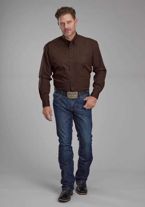 Men's Long Sleeve Shirt * Bttn Dn Collar * 1 Pt Back Yoke W/Pleat & Locker Loop * 2 One Point Pkts & Flaps * Roper "R" Embroidery