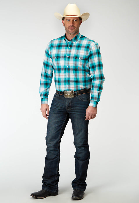Men's Long Sleeve Shirt * Bttn Dn Collar * 1 Pt Back Yoke W/Pleat & Locker Loop * 2 One Point Pkts & Flaps * Roper "R" Embroidery