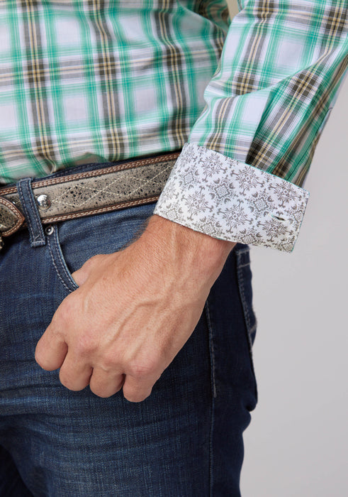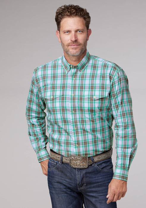 Men's Long Sleeve Shirt * Bttn Dn Collar * 1 Pt Back Yoke W/Pleat & Locker Loop * 2 One Point Pkts & Flaps * Roper "R" Embroidery