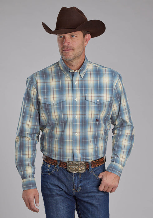 Men's Long Sleeve Shirt * Bttn Dn Collar * 1 Pt Back Yoke W/Pleat & Locker Loop * 2 One Point Pkts & Flaps * Roper "R" Embroidery