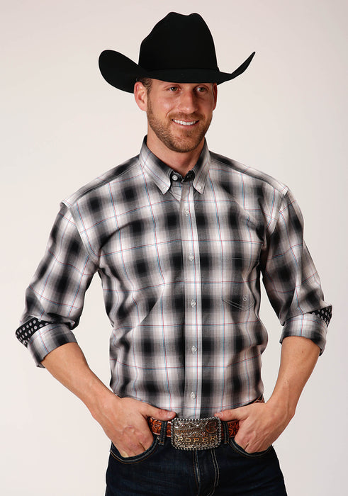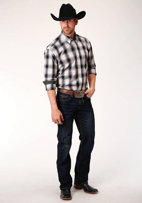 Men's Roper Black & White Amarillow Plaid Western Shirt