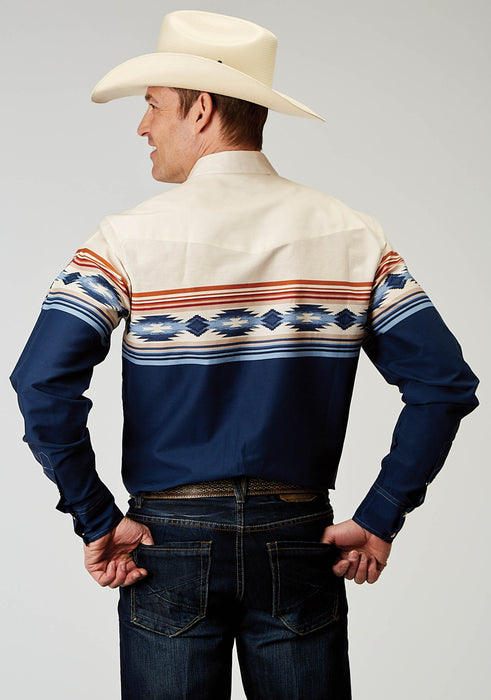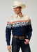 Men's Horizontal Aztec Border Print * 100% Cotton Poplin * 1 Pt Front & Back Yokes * Spread Collar * Welt Pockets W/1 Pt Flaps * 2 Snap Cuff * Snap Front * Garment Washed