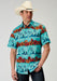 Men's Short Sleeve Shirt * Allover Print On 100% Cotton Poplin * 1 Pt Curved F/B Yokes * 1 Pt Open Pocket * Straight Hem W/Side Vent Detail * Pearl Snap Front * Garment Washed