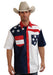 Men's Short Sleeve * 1Pt Curved Back Yoke * 1 Pt Curved Front Yoke * 2 One Point Pkts * 1 Pt Curved Flap * Emb Stars On Rt Front Yoke And Left Pkt * Pieced Stripes On Left Front Yoke And Right Pocket *