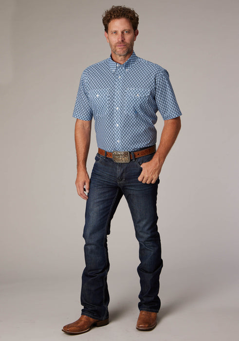 Men's Short Sleeve Shirt * Bttn Dn Collar * 1 Pt Back Yoke W/Pleat & Locker Loop * 2 One Point Pkts & Flaps * Roper "R" Embroidery