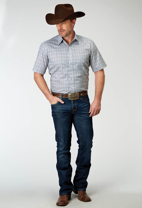 Men's Short Sleeve Shirt * Bttn Dn Collar * Straight Back Yoke W/Pleat & Locker Loop * 1 One Point Open Pkt * Roper "R" Embroidery