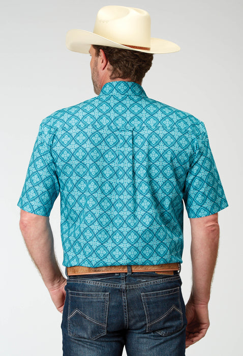 Men's Short Sleeve Shirt * Bttn Dn Collar * Straight Back Yoke W/Pleat & Locker Loop * 1 One Point Open Pkt * Roper "R" Embroidery