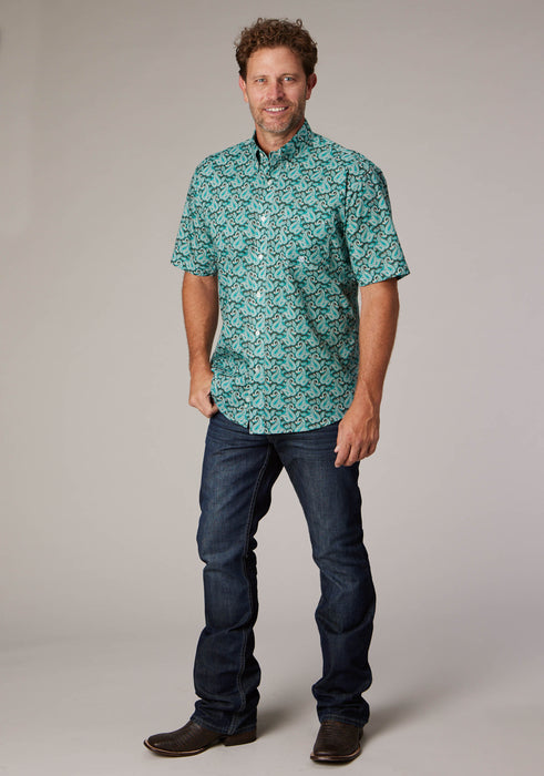 Men's Short Sleeve Shirt * Bttn Dn Collar * Straight Back Yoke W/Pleat & Locker Loop * 1 One Point Open Pkt * Roper "R" Embroidery
