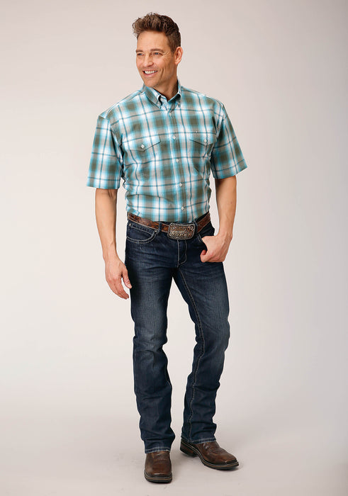 Men's Short Sleeve Shirt * Btn Dn Collar * 1 Point Back Yoke W/Pleat & Locker Loop * 2 One Point Pkt & Flaps * Roper "R" Embroidery