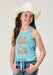 Girl's Blue Jersey Knit Racerback Tank * Scoop Neck * Tied Front Hem * Screen Printed Decoration