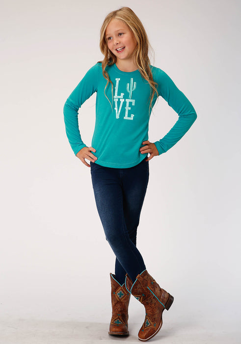 Girl's Roper Turquoise Western Long Sleeve Tee