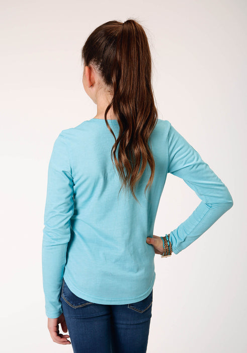 Girl's Sky Blue Jersey Knit Tee * Long Sleeve * Scoop Neckline * Screen Print Decoration