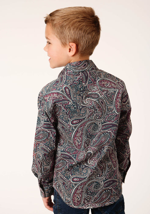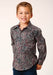 Boys Long Sleeve Western Shirt * Snap Front * Spread Collar * 1 Point Back Yoke * 2 One Point Pockets & Flaps * Roper "R" Embroidery