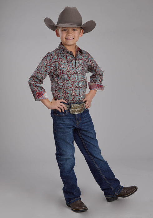 Boys Long Sleeve Western Shirt * Snap Front * Spread Collar * 1 Point Back Yoke * 2 One Point Pockets & Flaps * Roper "R" Embroidery