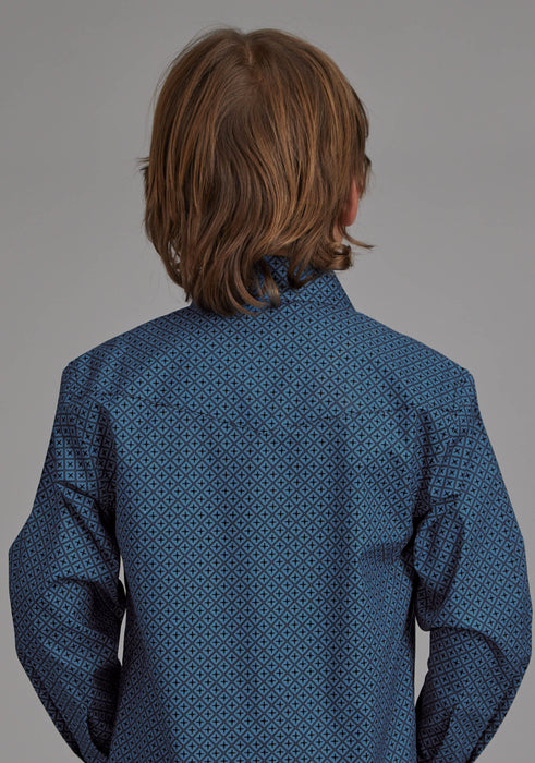 Boys Long Sleeve Western Shirt * 97% Cotton/3% Stretch * Snap Front * Spread Collar * 1 Point Back Yoke * 2 One Point Pockets & Flaps * Roper "R" Embroidery