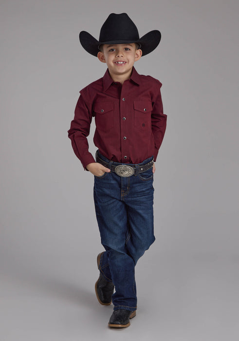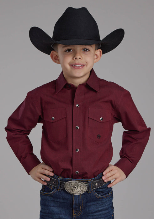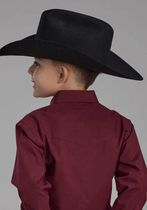 Boys Long Sleeve Western Shirt * Snap Front * Spread Collar * 1 Point Back Yoke * 2 One Point Pockets & Flaps * Roper "R" Embroidery