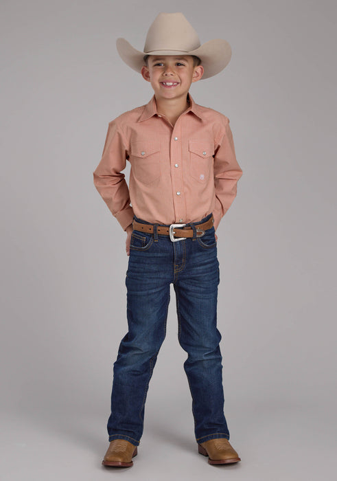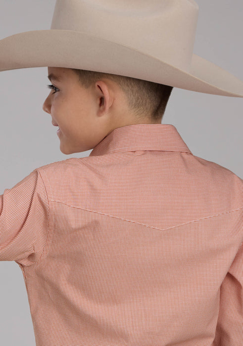 Boy's Roper Stretch Mini-Check Long Sleeve Shirt