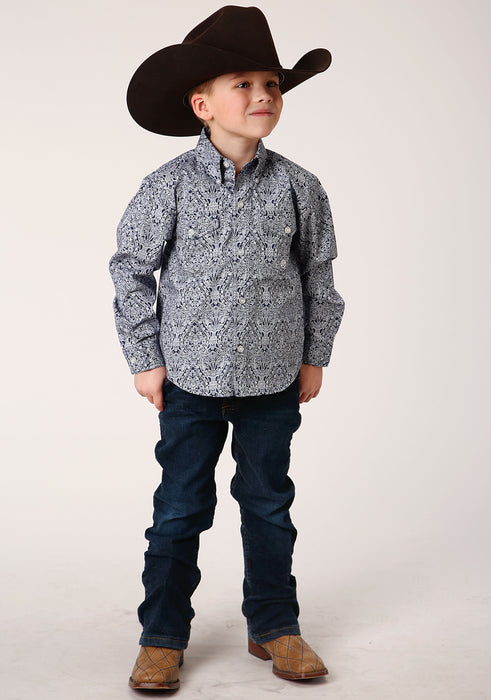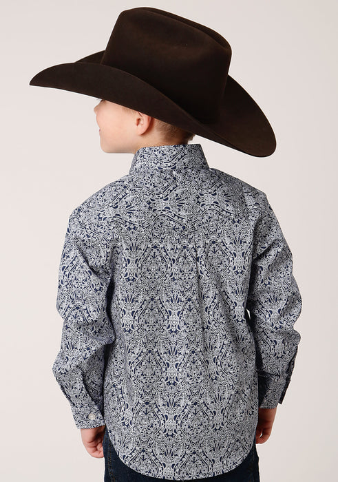 Boy's Long Sleeve Western Shirt * Button Front * Button Down Collar * 1 Point Back Yoke W/Pleat & Locker Loop * 2 One Point Pockets & Flaps * Roper "R" Embroidery
