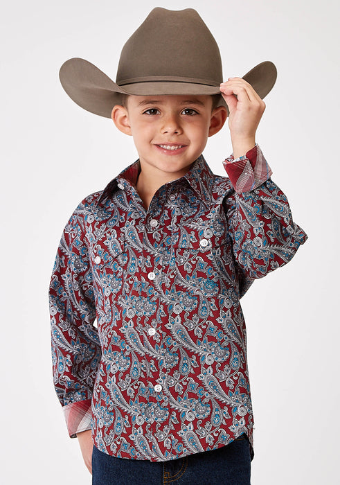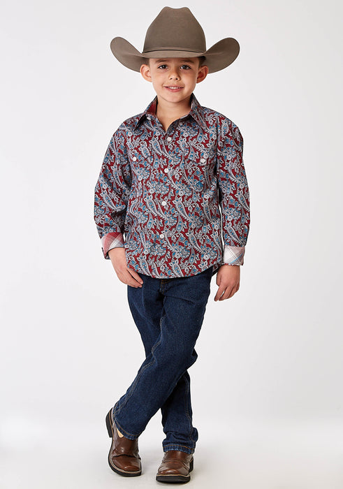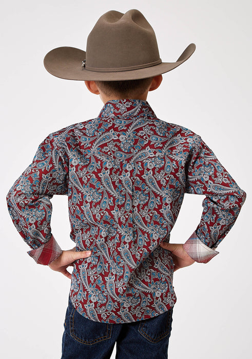 Boy's Long Sleeve Western Shirt * Button Front * Button Down Collar * 1 Point Back Yoke W/Pleat & Locker Loop * 2 One Point Pockets & Flaps * Roper "R"