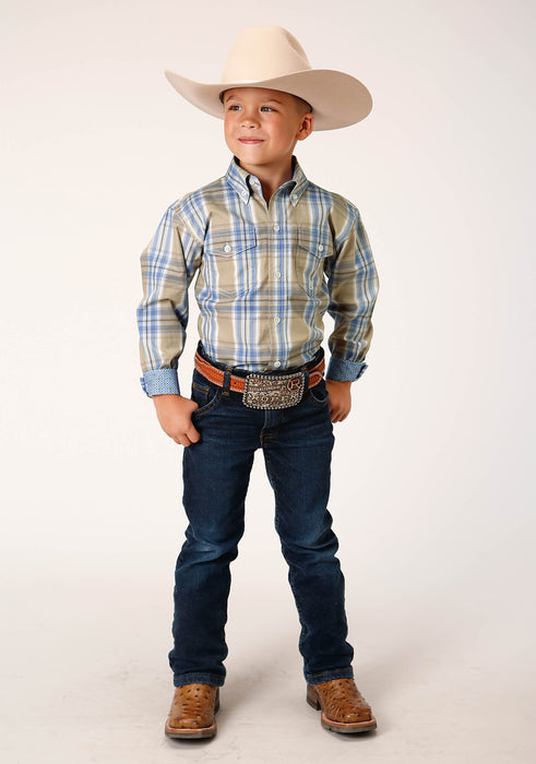 Boy's Long Sleeve Western Shirt * Button Front * Button Down Collar * 1 Point Back Yoke W/Pleat & Locker Loop * 2 One Point Pockets & Flaps * Roper "R"