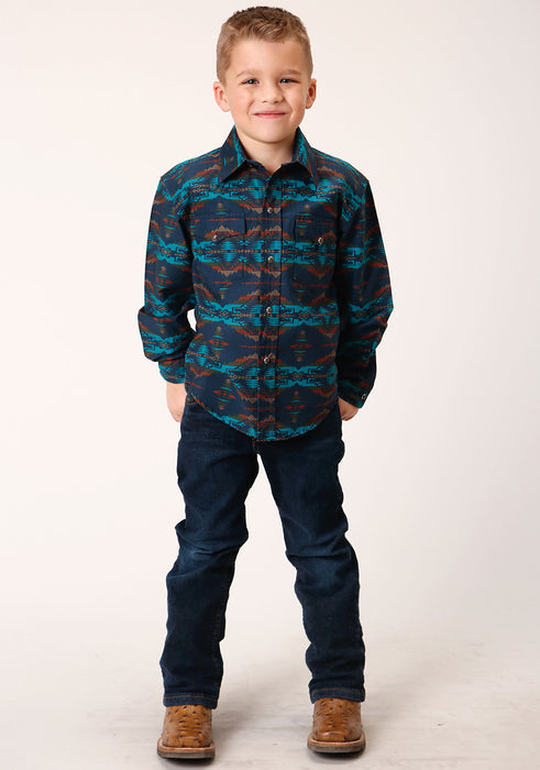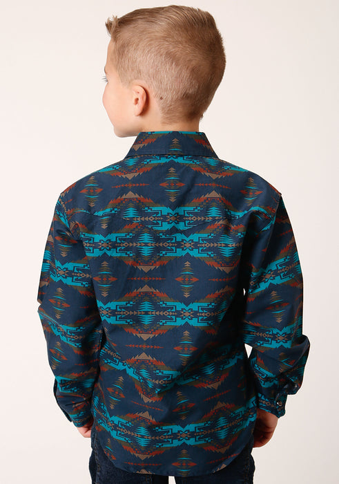 Aztec Horizontal Print * 100% Cotton Poplin * Denim Inside Trim * 1 Pt Front & Back Yokes * Spread Collar * 1 Pt Curved Pockets & Flaps * 1 Snap Cuff * Snap Front * Garment Washed