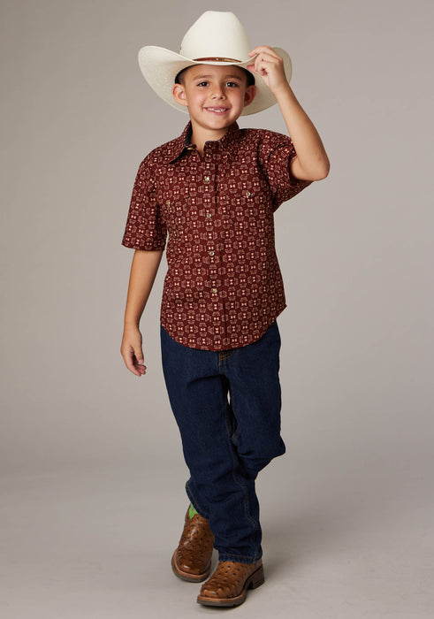 Boy's Short Sleeve Shirt * 1 Pt Curved Frt Yokes * Straight Bk Yoke W/Pleat * 1 Pt Curved Pockets & Flaps * Denim Inside Trim * Pearl Snap Front * Garment Washed